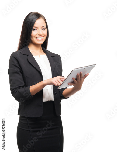 A successful and beautiful businesswoman with a tablet