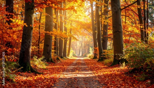 autumn, pathway, forest, tree, sunlight, leaf, gold, nature, walk, trail, wood, path, canopy, scenery, outdoors, journey, orange, brown, red, foliage, season, tranquil, serene, beauty, scenic, natural, beautiful, warm, bright, vibrant, colourful, perspective, view, passage, adventure, escape, peaceful, clear, destination, horizon, background, earth, environment, exploration, light, warmth, landscape