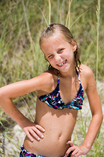 girl, youth, beach, bathing, suit, swimwear, pretty, smile, dune, posing, posed, young, preteen, summer, play, vacation