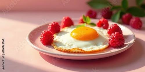 A sunny-side-up egg breakfast plate garnished with vibrant raspberries, a delightful morning meal