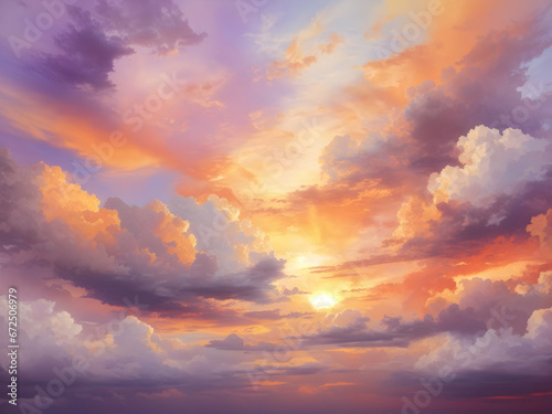 A sunset sky with clouds illustration for decoration.