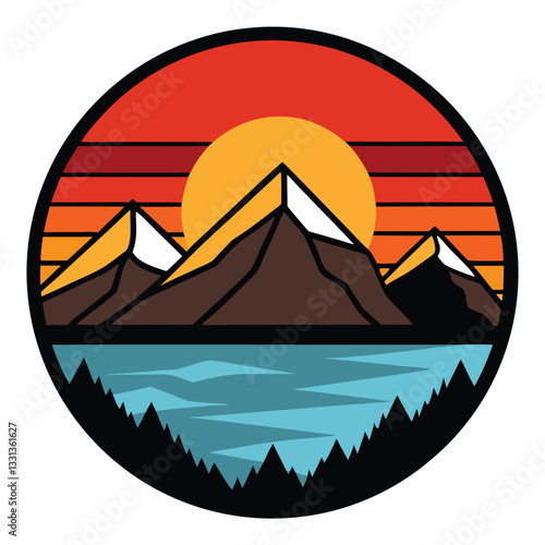 mountain, vector, landscape, illustration, nature, sky, mountain, snow, travel, sun, design, peak, art, icon, cartoon, sunset, hill, pyramid, silhouette, summer, rock, winter, ice, symbol, forest
