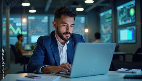 supply, chain, analyst, reviewing, datum, laptop, high, tech, office, soft, ai, generative, businessman, business, computer, working, notebook, work, desk, manager, people, sitting, photogenic, technology, table, men at work, cyberspace, job, person, smiling, professional, 1, hot drink, cafes, using