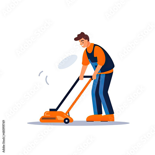 a sweeper Flat vector illustration daily activities working on white background AI Generated