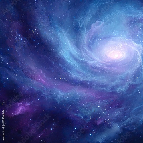 A swirling nebula of vibrant blues and purples, filled with stardust