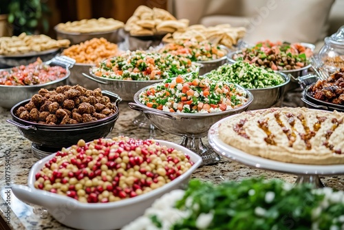 food, table, dish, buffet, catering, widener, dinner, feast, mediterranean, arabic, cookery, salad, hummus, meatball, chickpea, pomegranate, parsley, tomatoes, feta, garlic, olive oil, lemon, spice, appetiser, delicious, tasty, healthy, fresh, colourful, party, celebration, event, gathering, hospitality, epicure, eatery, kitchen, home, family, friends, culture, tradition, sharing, joy, occasion