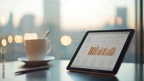 tablet, hot drink, cup, table, city, view, datum, business, statistic, graph, trend, work, morning, technology, device, office, light, modern, professional, analysis, information, presentation, report, research, screen, digital, beverage, urban, environment, productivity, lifestyle, tool, strategy, communication, design, workspace, sharpened, creativity, planning, visualisation, performance, management, connection, innovation