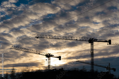 sunset, heavy equipment, truss, crane, tall, construction, rope, steel, arm, hoist, building, machine, equipment, high, industry, infrastructure, modern, progress, technology, tower, town, urbanisation, worked, scaffolding, rotary, design, engineering, urban, execute, construction site, development, apartment, create, cloud, sky, dusk, dark, evening, nature, sunbeam, sun, sunlight, sky background