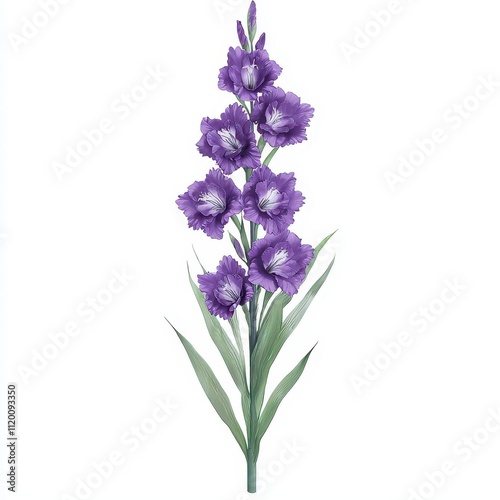 A tall purple flower with multiple blooms and green leaves, showcasing vibrant petals and a graceful stem.