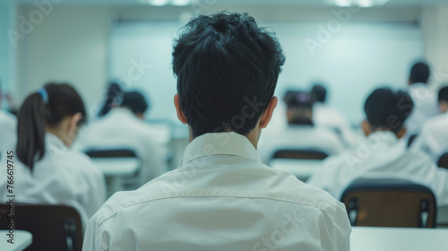 education, classroom, student, teacher, lecture, learning, school, desk, uniform, instruction, teaching, academic, study, seminar, training, high school, exam, lesson, concentration, sharpened, cognition, educational, youth, development, class, perspective, backview, teenage, studying, teenage, group, audience, participation, pedagogy, cv, attentive, classroom, academy, test, evaluation