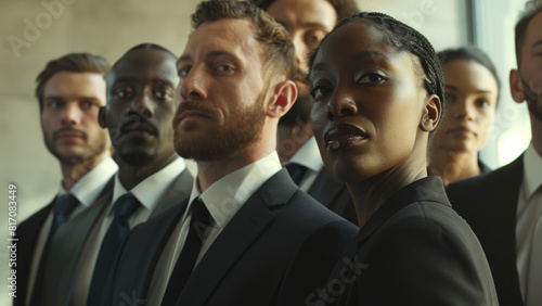 A team of professionals stands resolute in solidarity, exuding confidence and strength.