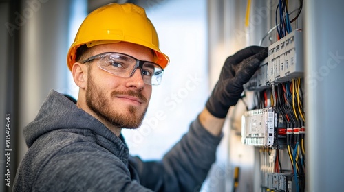A technician installing and testing electrical systems in a new office building, ensuring compliance with all safety regulations,