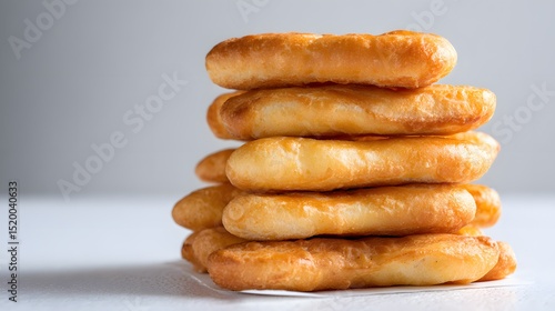 A tempting stack of golden-brown beignets, perfect for a sweet treat or breakfast indulgence.