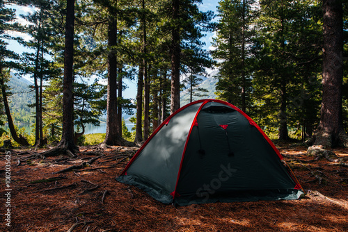 a tent in the summer forest