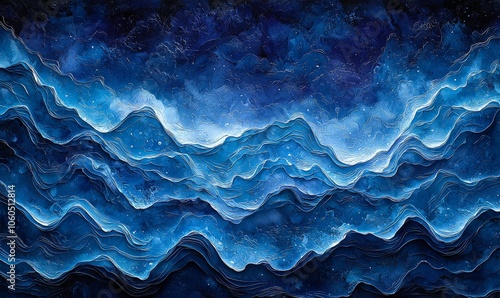 A textured abstract representation of ocean waves in deep blue and light blue hues.