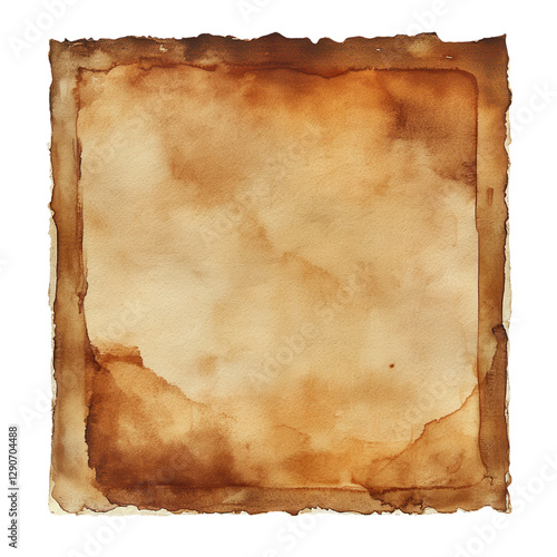 A textured, aged paper with a warm, brown hue and irregular edges, perfect for artistic or vintage themes, isolated on white background.