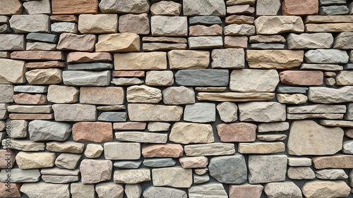 A textured background featu a rustic stone wall with various colors and shapes of natural stones creating a unique pattern.