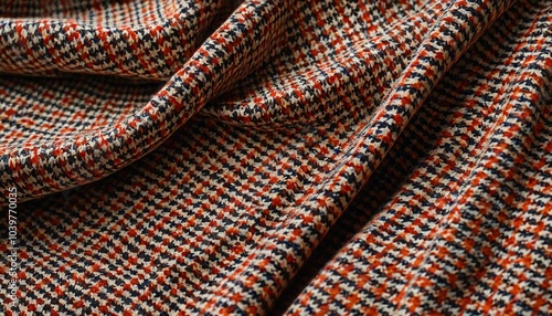 A textured houndstooth fabric displayed flat, highlighting its classic pattern and warmth, perfect for coats and scarves, Generative AI