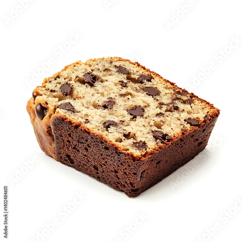 thick, slice, chocolate, chips, banana, bread, soft, crumb, gold, crust, visible, piece, isolated, white, background, art, style, flat, photo, front, view, chunk, resolution, additional, condiment, side