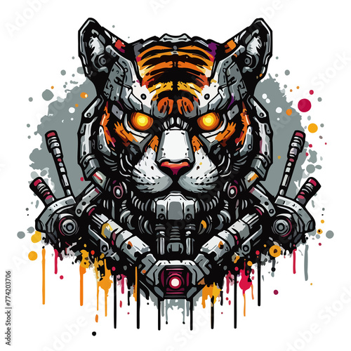 gradation, tiger, illustration, robot, mascot, cartoon, vector, face, symbol, animal, design, art, graphic, head, background, technology, character, wild, machine, cat, futuristic, predator, logotype, wildlife, cyborg, danger, future, icon, power, game, strength, print, signs, metal, hunter, claw, angry, decoration, mechanical, emblem, panther, tattoo, graffiti, scarey, monster, teeth, star, drawing