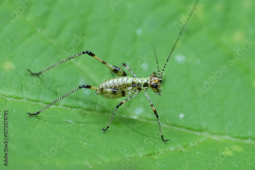 katydid, nymph, insect, green, leaf, nature, macro, wildlife, small, speckled, camouflage, animal, closeup, grasshopper, fauna, flora, outdoors, garden, plant, leg, antennae, wild, creep, crawl, walking, texture, detail, outside, tiny, creature, background, environment, ecological, ecosystem, foliage, stem, vein, natural, habitat, leafy, stalk, vegetation, earth, biology, botany, greenery, arthropod, bug