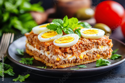 traditional, plate, pastel, corn, pie, layered, ground, meat, olive, hard, boiled, egg, garnished, fresh, basil, food, meal, dinner, dish, fish, vegetable, grilled, cookery, steak, eatery, salad, lunch, cheese, delicious, healthy, white, beef, salmon, roasted, epicure, fried, chicken