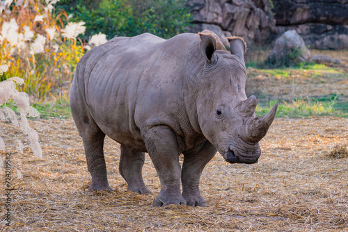 rhino, wildlife, nature, dusk, tranquil, golden hour, serene, mammal, large, horn, conservation, wilderness, habitat, evening, calm, peaceful, majestic, animal, outdoors, safari, wild, preservation, thick skin, endangered species, solitude, herbivore, pachyderm, solitary, powerful, robust, twilight, grazing land, dry grass, natural light, environment, strength, rhino, zoo, endangered, dangerous