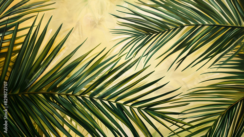 A tranquil setting with palm branches in the background, where delicate leaves gently sway in the wind.