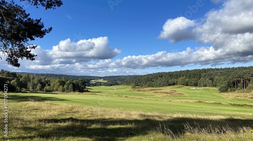 golf course, summer, countryside, rolling hills, blue skies, nature, scenic view, relaxation, sport, leisure, calmness, open space, panoramic, landscape, summer day, fresh air, beautiful day, leisure time, golfing, healthy lifestyle