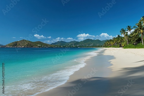 beach, tropical, water, turquoise, sand, white, palm, tree, blue, sky, serene, clear, bright, nature, paradise, travel, vacation, relaxation, coastal, scenic, peaceful, holiday, summer, get-away, ocean, shoreline, idylli, calm, sunny, lush, breeze, horizon, landscape, escape, tranquil, photorealistic, professional, lighting, beauty, destination, exotic, refreshing, warm, picturesque, gold, sparkling
