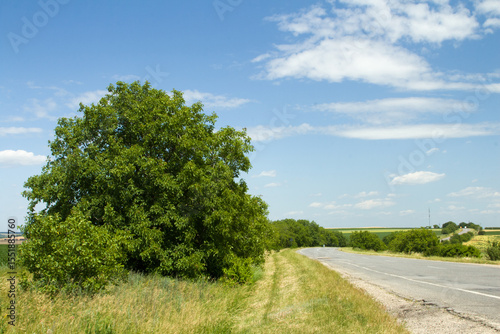 sky, grass, tree, scene, way, road, highway, day, landscape, nature, summer, rural, country, forest, path, green, field, cloud, tree, countryside, cloud, lane, travel, spring, meadow, asphalt, dirt, outdoors