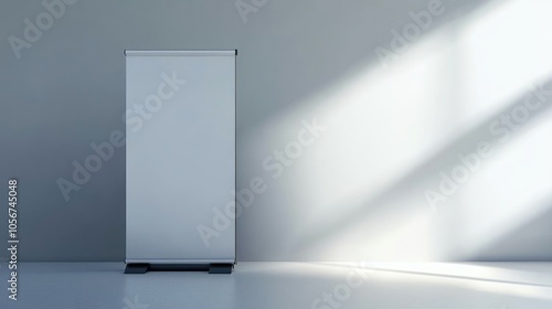 A vacant portable booth stand or roll up banner is perfect for promotional activities This contemporary illustration features a blank vertical banner mockup for showcasing information
