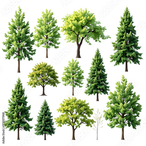 a variety of beautiful and vibrant trees, set against a clean, natural backdrop, creating a serene and visually appealing scene. The collection showcases diversity in foliage and structure.