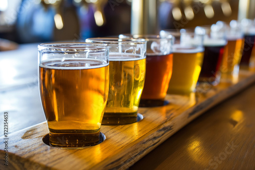 beer, brewery, tasting, sampler, assortment, wooden, bar, alcohol, beverage, brew, pint, diversity, favor, hop, malt, yeast, glasses, drink, pub, variety, ales, lager, stout, fermentation, foam, handcraft, leisure, lifestyle, refreshment, amber, gold, dark, light, brewing, social, draught, quality, local, enjoyment, hospitality, texture, taste, culinary, life events