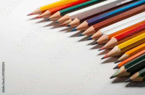 A variety of pencil on the table with white background and nice lighting