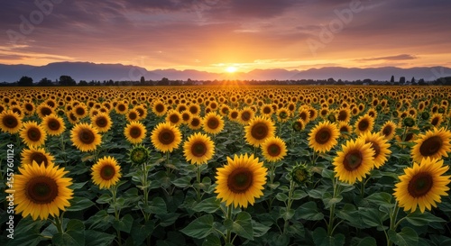 sunflower, field, flower, bloom, blossom, flower petals, yellow, green, leaf, stem, nature, agriculture, farming, rural, landscape, horizon, sky, sunset, sunrise, sun, light, dawn, dusk, cloud, orange, gold, vibrant, beauty, scenic, outdoors, summer, season, growth, plant, head, seed, pollination, sunlight, warmth, energy, peace, calmness, serenity, calm, majestic, expansive, endless, picturesque, bright