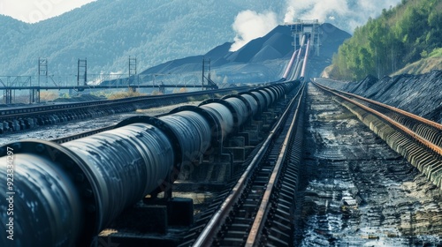 pipeline, processing plant, smoke, huge, converging, distant, endeavour, industry, infrastructure, track, factory, mining, transportation, engineering, machinery, environmental impact, extraction, path, production, rural, countryside, metallurgy, resource, labor, industrial area, immensity, logistic, connection, commercial, power, smokestack, metalwork, iron, remote