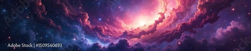 A vast, swirling nebula representing the boundless expanse of a cosmic deity, celestial bodies forming intricate patterns reflecting divine order , darkness, belief