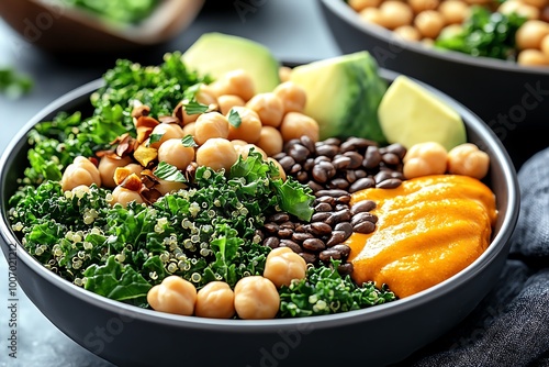 A vegetarian-friendly meal for Type A blood type, featuring quinoa, chickpeas, and kale, perfectly balanced for a plant-based diet.