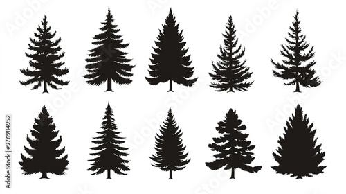 A versatile set of Christmas tree silhouettes, featuring various styles of pine trees and forest fir trees. This pictogram collection captures the essence of nature and the festive spirit,