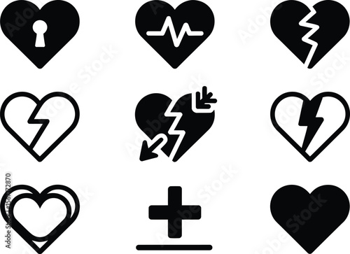 nubes, love, broken, health, medicals, symbol, icon, cardiology, heartbeat, pulse, care, plus, lock, keyhole, romance, valentine, emotion, feeling, pain, trauma, sad, sorrowful, depression, human relationships, problem, emergency, warning, safety, aid, signs, graphic, shape, abstract, anatomy, healthy, health care, beat