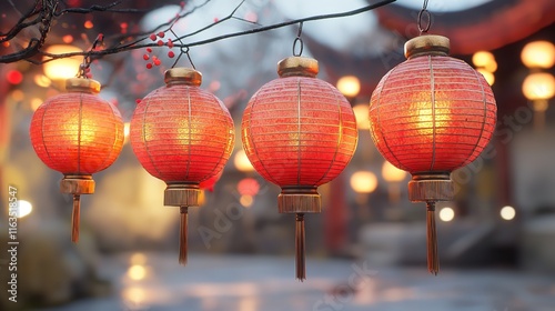 A Vibrant 3D Icon Set of Red Lanterns, Perfect for Chinese New Year or Festive Celebrations