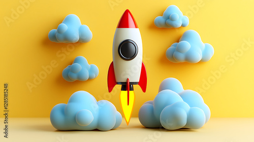 rocket, three-dimensional, render, vibrant, icon, abstract, cloud, launching, project, startup, business, innovation, technology, digital, design, creative, concept, dynamic, energy, liftoff, success, enterprise, inspiration, growth, achievement, progress, momentum, sky, modern, tech, futuristic, breakthrough, goal, marketing, entrepreneurial, forward, sleek, powerful, high technology, illustration, launch, new, idea, ambition