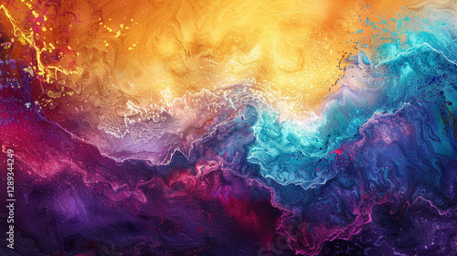 A vibrant abstract gradient showcasing dynamic wave-like ribbons in radiant shades of magenta, cyan, and orange, creating a bold and energetic design.