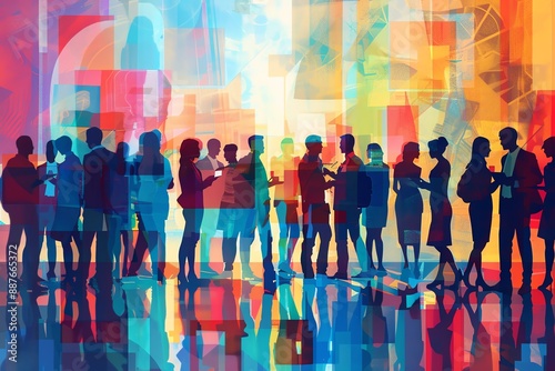 vibrant, abstract, paint, depict, silhouette, people, socialise, blend, colours, human, lively, event, brushwork, modern, connection, nightlife, culture, dynamic, creative, concept, urban, puckered, harmony, design, gesture, fine, technique, create, figure, aesthetic, contrast, background, shadow, artistic, high-coloured, artwork, balance, party, movement, expressive