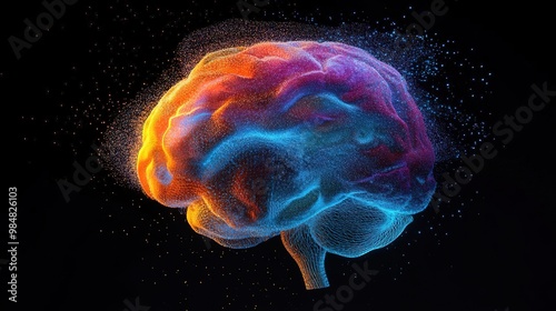 A vibrant, abstract representation of a brain showcasing colorful patterns and glowing effects on a dark background.