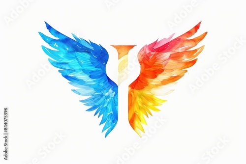 A vibrant and colorful letter with wings on a white background, ideal for use in illustrations or designs where whimsical and creative elements are needed