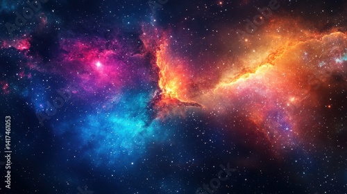 A vibrant and colorful nebula in space, showcasing stars and cosmic dust.