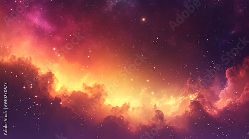 A vibrant and colorful nebular galaxy wallpaper background, featuring stars and cosmic clouds. The illustration captures the expansive universe with swirling nebulae, twinkling stars.