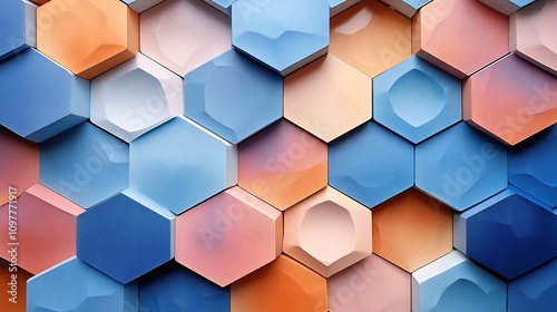 A vibrant arrangement of hexagonal tiles in shades of blue and peach, creating a modern design.